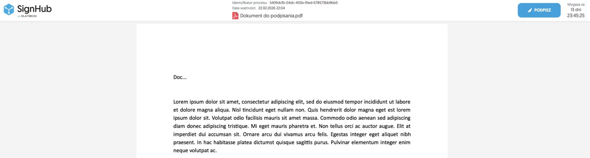 - Pojawi się okno z treścią dokumentu. Aby podpisać dokument wybierz – PODPISZ