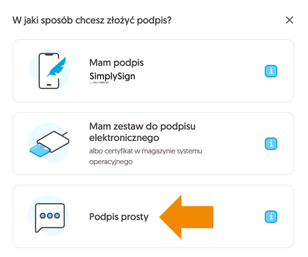 - Z listy dostępnych podpisów wybierz – Podpis prosty